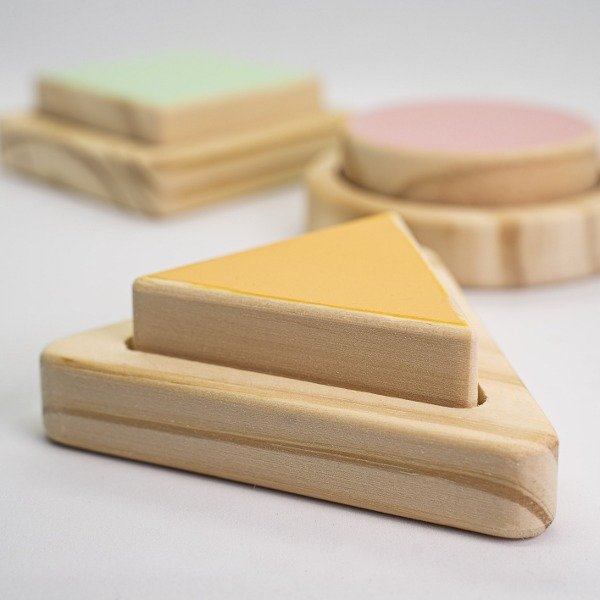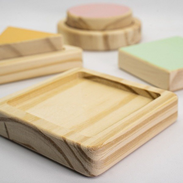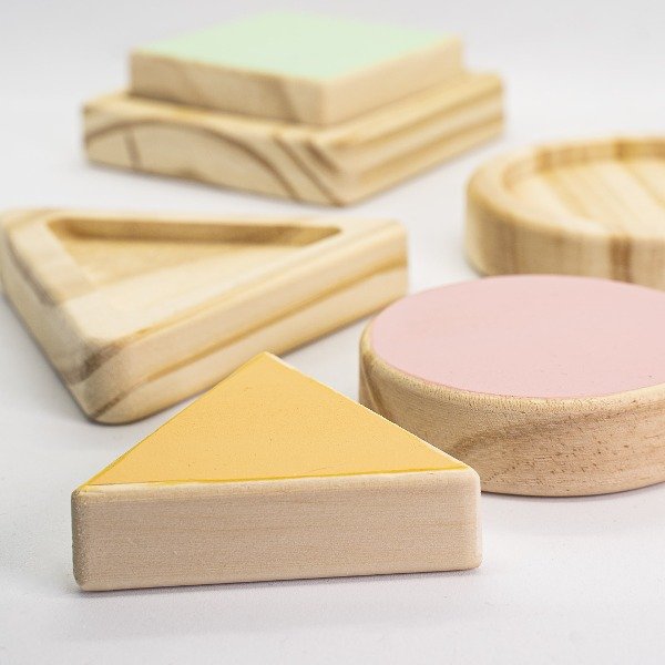 Este material introduce a los bebés al mundo de las formas: ofreciendo primero el círculo, luego el cuadrado y al finalizar el triángulo. Al pertenecer cada forma a su base individualemente, niños y niñas sentiran gran satisfaccion al realizar la actividad, evitando que se frutren y la abandonen.