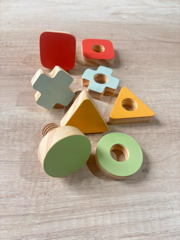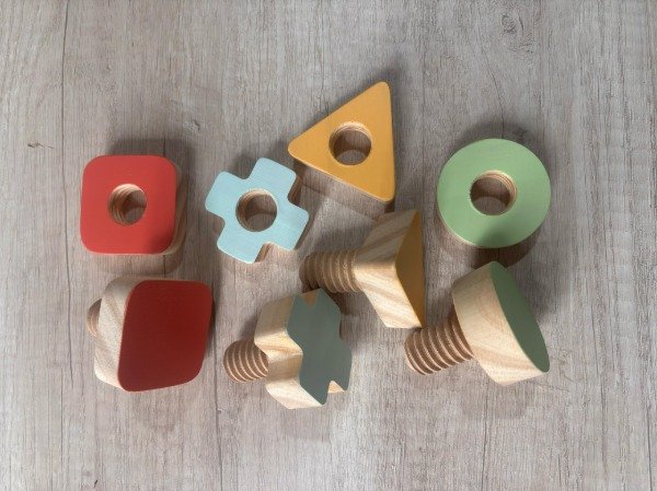 SET de tuercas y tornillos x 4 realizado en madera natural.