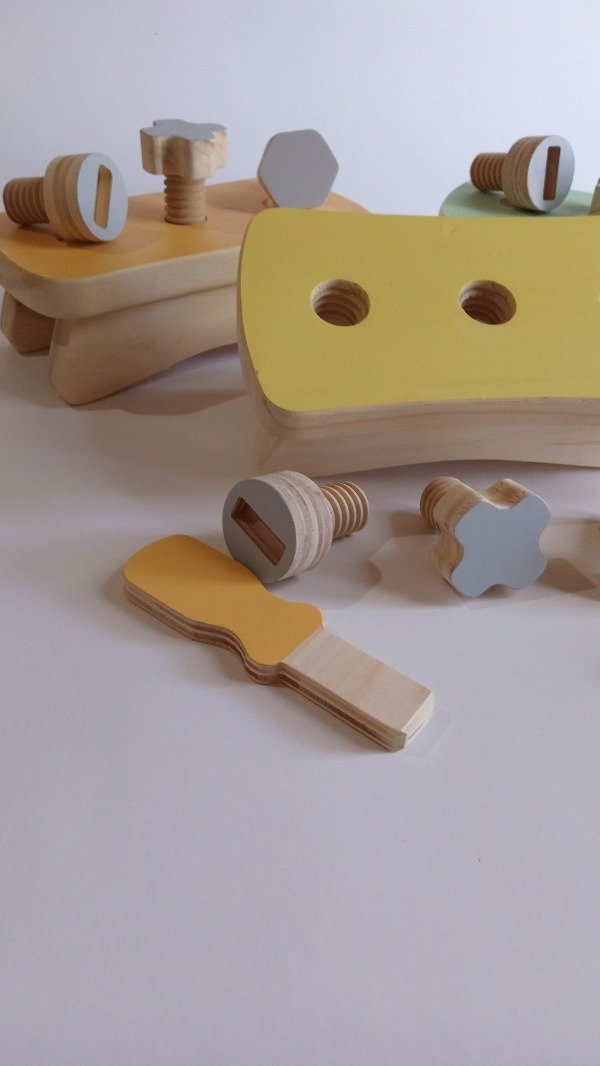 Banco de Herramientas: realizado en madera de pino, con roscas y tuercas de madera!!!