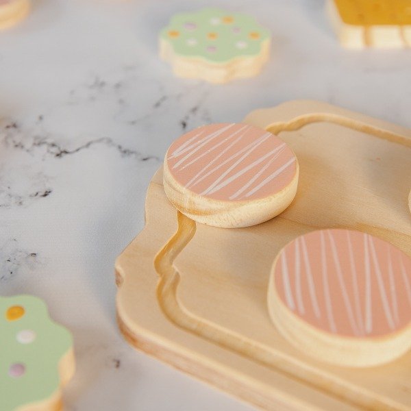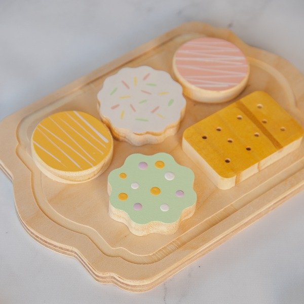 Bandeja con 5 cookies, realizada en multilaminado de araucaria.